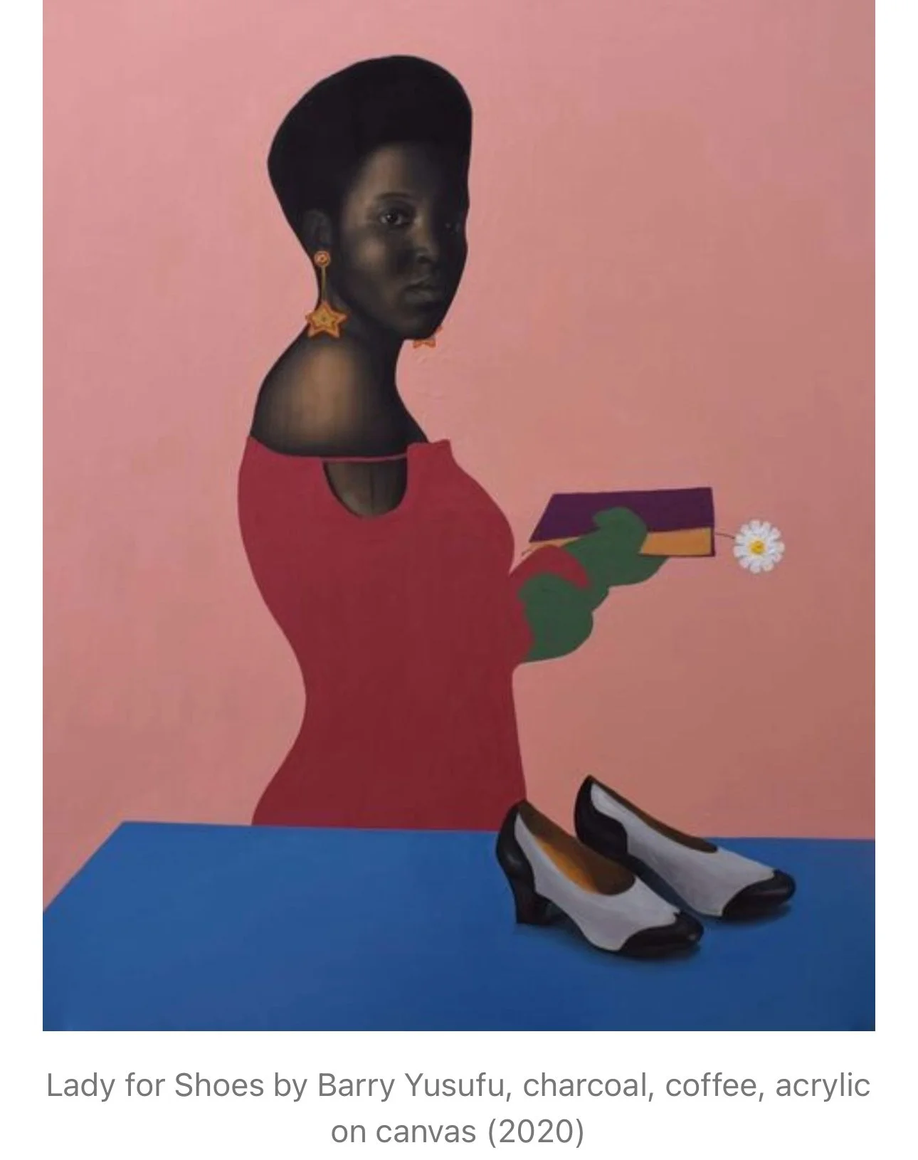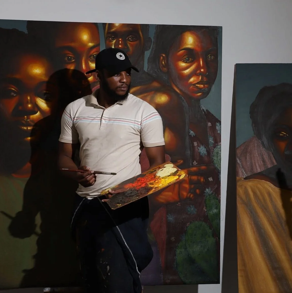 Between 2018 and 2019, he kept painting and creating and participated in over 20 exhibitions in Nigeria; however, it was difficult to sell his work because he felt that most collectors there rarely wanted portraits of strangers in their homes.