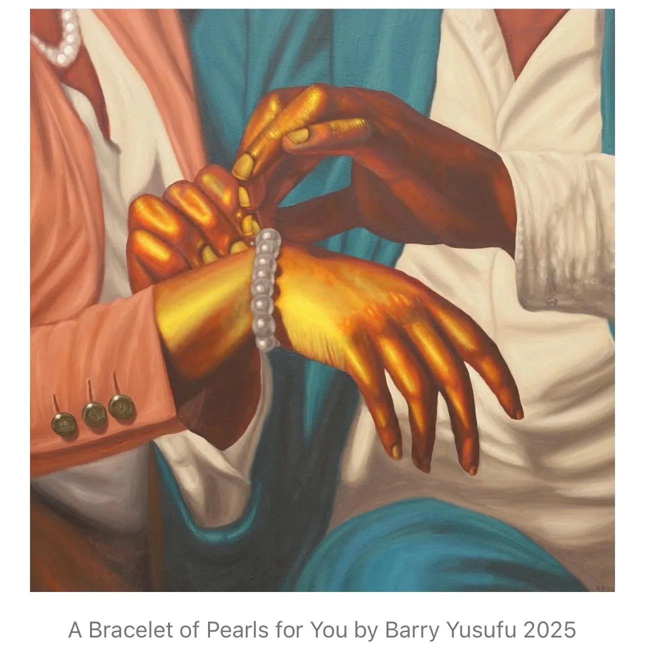 I told him I read the work as broken promises, perhaps by a lover or a son. The woman appears apprehensive about receiving the pearls, a little forlorn. I asked, wistfully, if I was right.