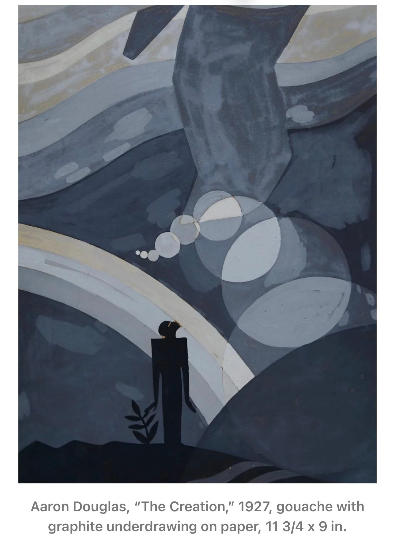 I got curious about what this meant in practice, so I researched artists Du Bois featured or commissioned. Aaron Douglas (b. 1899), often called “the father of Black American art,” was one of them. He illustrated covers for The Crisis and later for Locke’s The New Negro after being urged by Du Bois to quit his teaching job in Missouri and move to Harlem in 1924.