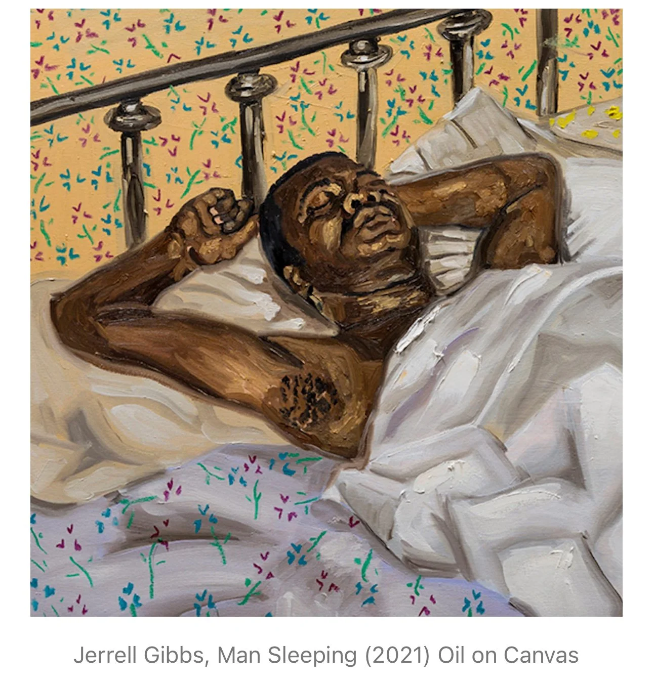 Jerrell Gibbs paints from family photographs, capturing the intimacy of everyday Black life. His work feels in line with what I imagine Locke admired.